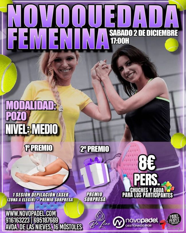 Avd. de las Nieves 16 · Móstoles 28935 · Madrid 916163223 - 695187669info@novopadel.comL-V 9:00h a 23:00h S y D 9:00h a 14:00h / 16:00h a 21:30h