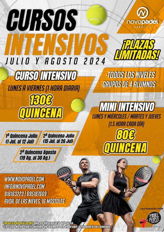 🥎PREPARACIÓN DE MENORES CAMPEONATO DE ESPAÑA🥎 ‼️Abierto el plazo de inscripción‼️ 🗓 del 19 de Agosto al 23 de Agosto 2024 ➡️ Lunes/Miércoles o Martes/Jueves • 1,5h de clase cada día 40€/semana ➡️ Lunes a Viernes • 1h de clase cada día 65€/semana ☎️ 916163223 / 695187669 (Se atiende whatsapp) 📧 info@novopadel.com 🧑💻 www.novopadel.com…