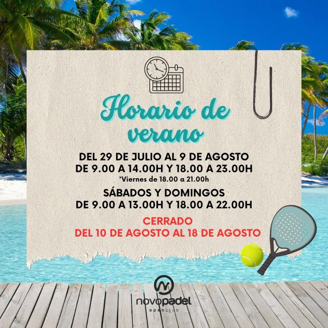 Club de Padel Novopadel: Horario de Verano 2024 ¡Bienvenidos a todos los apasionados del pádel! En Novopadel, nos complace anunciar nuestro horario de verano 2024 para que disfrutes al máximo de tus partidos y entrenamientos durante la temporada estival. Horario General Del 29 de julio al 9 de agosto, nuestras instalaciones estarán abiertas en los siguientes…